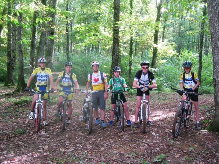 Ce Samedi 05 Octobre 5 jeunes à l'entraînement encadrés par Alain Gautret et un intervenant extèrieur Laurent Pirard.L' ambiance a été sympa et studieuse sous les conseils de Laurent et Alain . Après une boucle d'échauffement (boucle sud),le travail d'entrainement a consité sur un parcours trialisant à éffectuer du pédalé-freiné, courses d'escargots, parcours avec buches de bois puis souches pour travailler le lever de la roue avant. Puis une autre boucle en fin de séance (montée par la route et sentier-tunnel de buis à gauche avant Salaport, Roche fendue, bois de Fayat, combe Jélisse et retour par la petite boucle du départ du championnat de l'Ain. Un nouveau minime était présent : Antoine Durand, il a donc fait connaissance avec l'encradrement et quelques jeunes de la section VTT.