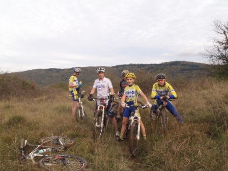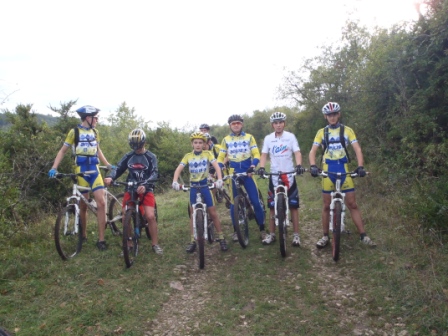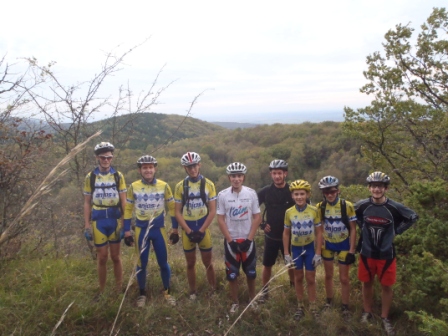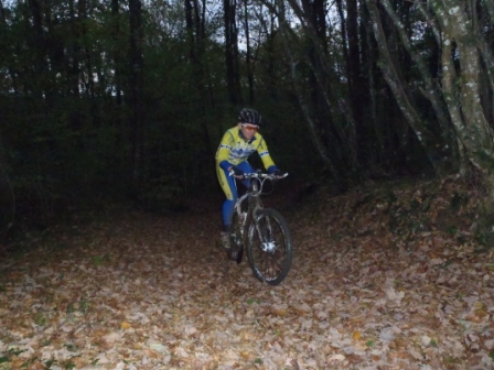 Samedi 02 Novembre 2013 neuf Véttistes de la section VTT VCA se sont retrouvés pour un entrainement sur les hauteurs d’Ambronay. Le départ de cet entrainement avait lieu sur le site de départ de notre course du mois d’Aout ( XC d’Ambronay). Après quelques réglages techniques (échange de vélo pour Maxime et Daniel et recherche de chaussures pour Willem), le groupe s’est élancé sur le tout nouveau parcours de la futur course. Première difficulté du parcours : La montée bien pentue et fraichement défrichée par Alain et Daniel … Ce premier test est plutôt concluant quand à la difficulté de cette grimpette … pieds à terre pour tous les coureurs !!! À travailler donc, car sur terrain sec ça passe sur le vélo.