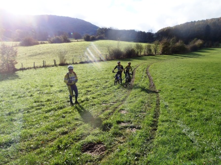 En ce Lundi 11 Novembre 2013 la température affichait 6 ° C au thermométre à 9h00 du matin ... mais vu que le soleil faisait son apparition, quatres Vttétistes de la section( Fabrice AMONT, Hugo BERNARD, Alain GAUTRET et Daniel BERNARD )se sont retrouvés pour une première reconnaissance de la randonée orgnisée par le Team VTT VCA en 2014 : L' Ambaroise By Night.