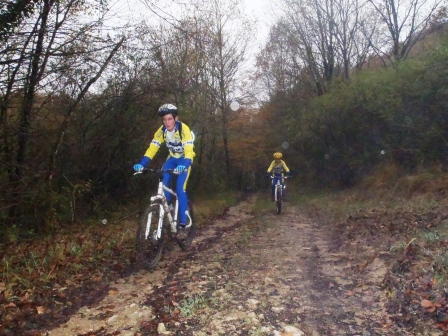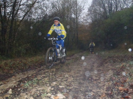 Après une petite portion de route nous avons pris la direction de Douvres par des sentiers assez boueux .Willem comme à son habitude a éclaboussé ses camarades en profitant des nombreuses flaques de boues sur le parcours … mais la température inférieure à 5 °C l’a vite calmé. Ensuite direction les Allymes, puis le Château … nous sommes redescendus par un single track assez technique qui avait été lors de la montée une piste d’essais pour une montée impossible … mais alors vraiment impossible !!! Nous avons ensuite continué notre sortie en direction de Douvres et du Quartier de Tiret et retour à la case départ.