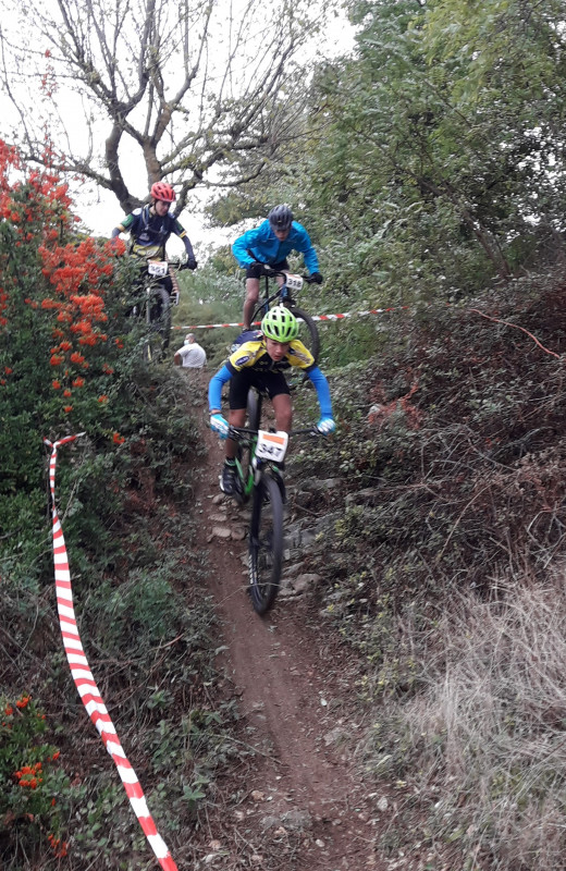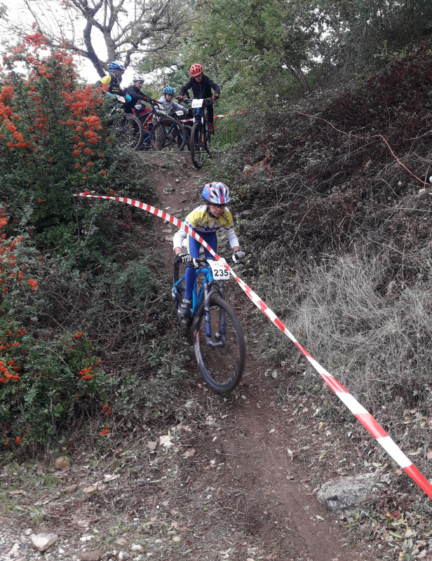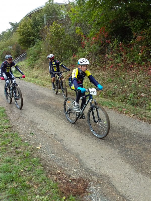 Chez les minimes, Tom Mazoyer, auteur d'un départ canon, était le seul à résister aux deux pilotes supersoniques du VTT Conliège, au premier tour. Malheureusement une crevaison sur une aiguille de buis coupée à ras le sol l'obligera à abandonner.