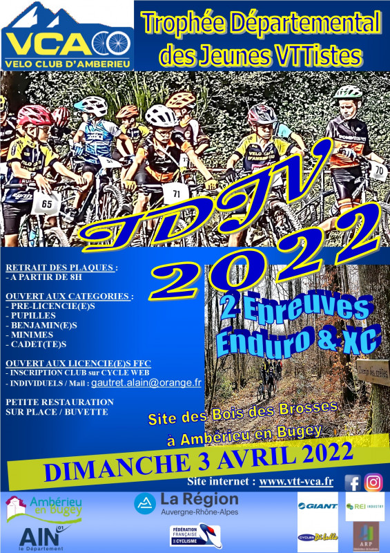 Prochainement, nous organiserons à Ambérieu, au bois des Brosses: le trophée départemental du jeune vététiste, le 3 avril, puis la 3ème manche de coupe AURA de VTT "l'Ambérace", également support du championnat de l'Ain VTT, le 8 mai, ensuite le trophée régional AURA du jeune vététiste les 18 et 19 juin et pour terminer l'"Ambarroise", rando VTT ouverte à tous fin août.