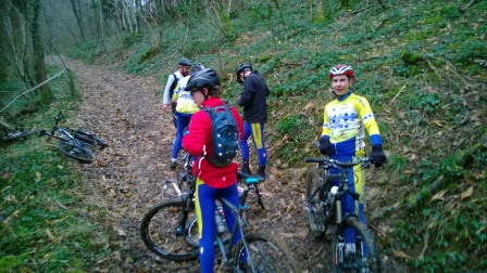 Samedi 02 Février , Alain nous avait donné rendez vous sur la commune de Jujurieux pour un entrainement club de 25 kms . A quatorze heures le ciel était couvert mais il ne pleuvait pas, c’est donc dix Vétéistes qui se sont retrouvés pour un départ groupé depuis la place de la pharmacie de Juju. Après une trentaine de minutes sous le sec  et une ascension vers Mérignat la pluieest bien là,  nous décidons donc d’écourter l’entrainement pour revenir au plus vite vers notre point de départ … Fabrice va crever deux fois, après réparations et malgré un temps de plus en plus chaotique nous choisissons de rester sur les chemins …  la boue et la pluie ne découragent pas les jeunes qui s’en sortent vraiment bien sur un terrain parfois presque impraticable …