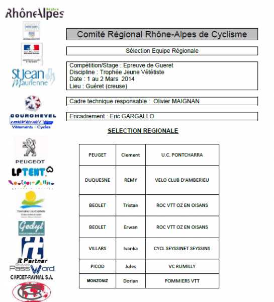 Rémy DUQUESNE sélectionné en équipe Rhône-Alpes