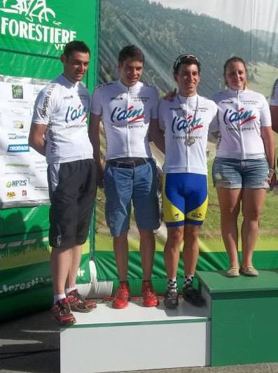 Dans la course des juniors et master 3-4-5 et dames nous avions Antonin LASSERRE et Baptiste DUBOIS ; Benjamin PONCIN ET Yvan CHANAL ( juniors) et Bruno MOREL passé sur la route cette année , chez les dames c’était le grand retour d’Aline MELLIFIORI et chez les master Daniel BERNARD était au départ. Le départ justement fut très rapide, Antonin monte en tête la première grosse bosse du circuit, derrière Daniel et Baptiste suivent … Baptiste qui revenait à la compétition va vite passer en tête et imprimer un gros tempo à cette course. Daniel va cramper dès le premier tour laissant filer son principal adversaire Xavier PERRAULT ( tenant du titre) , dans le deuxième tour il va se reprendre pour aller chercher une seconde place . Antonin va subir la chaleur il décroche aussi une seconde place derrière Baptiste super en forme et qui décroche le titre de champion de l’Ain junior. Aline notre féminine pourtant en manque de compétition va tout donner pour elle aussi décrocher une superbe victoire et un nouveau titre. Benjamin et Yvan tous les deux juniors de la section VTT VCA vont tout faire pour rester au contact , Yvan en manque de kilomètres devra abandonner , Benjamin va aller jusqu’au bout et terminer cette course avec courage, Bruno qui avec très peu de kilométres en VTT a bien apprécié le parcours a travaillé ses intensités en préparation des courses sur route. Bravo à tous.