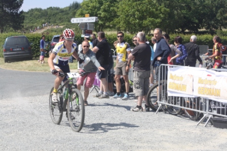 La course suivante était consacrée au juniors et Master 3-4-5 , un seul representant du team sur cette course : Daniel BERNARD ( master 3) . Daniel pas très bien placé au départ ne s'est pas affolé, il boucle le strat loop en bonne position, vers la 15 ème place scratch ... 3 ème master 3 au terme du premier tour (il y avait 2 tours de circuit), Daniel dans une descente va heurter une pierre et briser sa pédale, impossible de clipser, il devra se résoudre à l'abandon . Dommage car le podium était jouable pour lui.