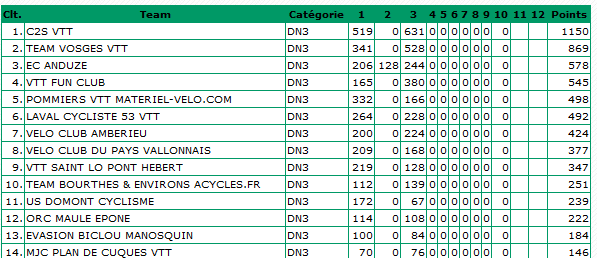 CLASSEMENT TROPHEE DES TEAMS DN3 APRES DEUX MANCHES DE COUPE DE FRANCE
