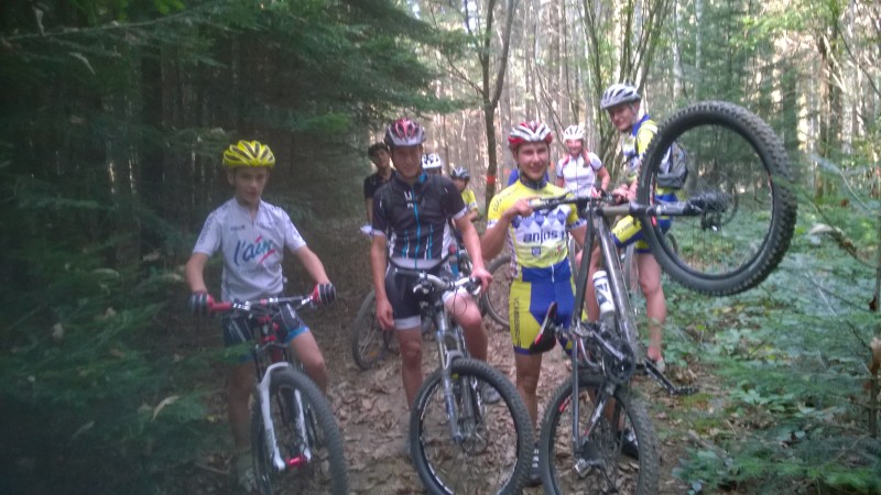 Le deuxième groupe a pris la direction du circuit de l’Ambrobike ( sans les grosses difficultés) , avec comme pour le premier groupe un retour via la roche fendue. Daniel BERNARD a mené ce groupe sur une petite dizaine de kilométres, entouré par deux autres encadrants licenciés au sein du club : Bastian HOUWINK qui était déjà très présent lors de la dernière saison, David LAMBERT ( le cuisinier du team VTT VCA qui cette année a envie de seconder Alain GAUTRET au sein de l'Ecole de VTT) et aussi le père de Fabrice AMOND qui nous a donné un bon coup de main.