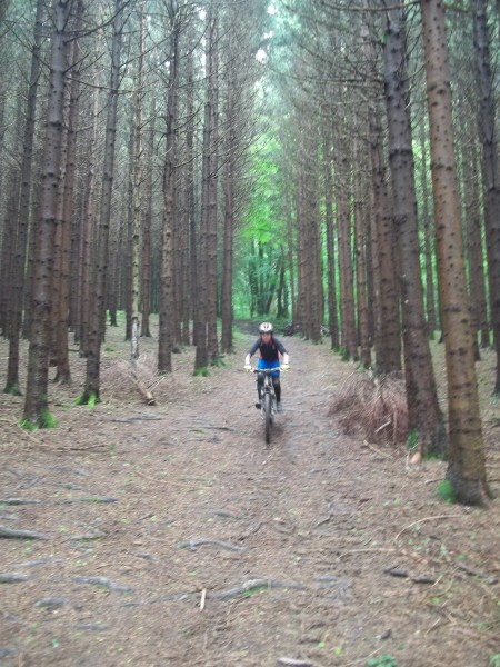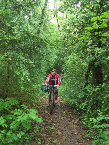 Après un ou deux kilomètres de descente sur la route forestière et autant sur un chemin de débardage bouché par des arbres déracinés, la première vraie descente VTT était vite avalée, mais les premiers pépins mécaniques arrivaient.