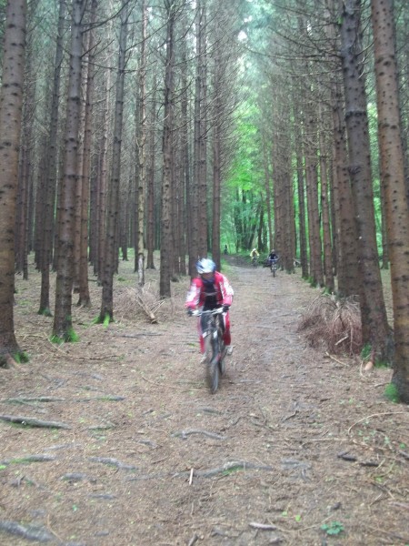 Après un ou deux kilomètres de descente sur la route forestière et autant sur un chemin de débardage bouché par des arbres déracinés, la première vraie descente VTT était vite avalée, mais les premiers pépins mécaniques arrivaient.