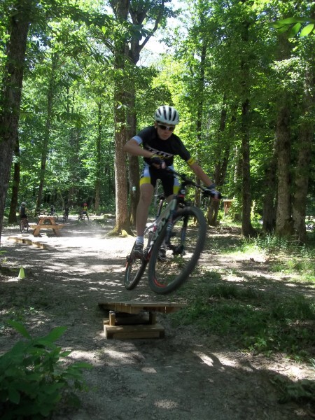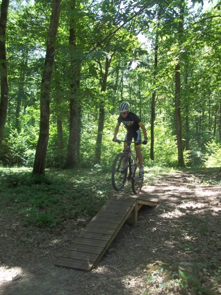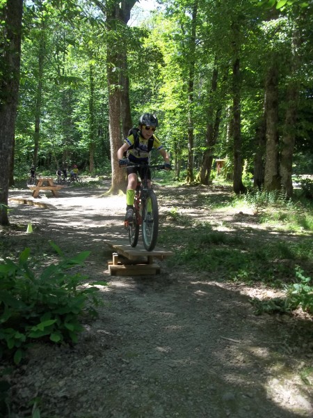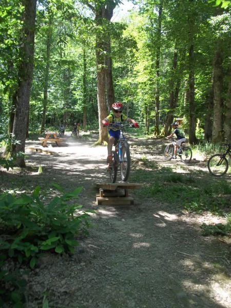 L'après-midi se termina par un tour plus long avec mise en pratique des techniques de franchissement dans les bois de Fayat avec passage sur les sentiers des racines et des sapins et l'ascension de la "bosse de la coupe de bois", véritable mur à 26 % que chacun essaya de gravir le plus loin possible sans mettre pied à terre.