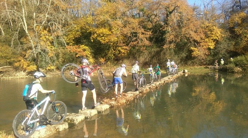Tous sont rentrés sains et saufs, en franchissant le gué d'Arthurieux, dont les pierres recouvertes de mousse humide l'avait rendu encore plus périlleux que le précédent. Pas de bain accidentel, sauf pour certains qui ont fait la traversée en vélo directement dans la rivière!