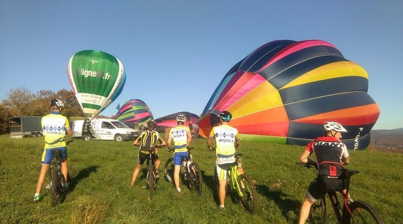 Des vététistes fiers de voir le décollage des Montgolfières !