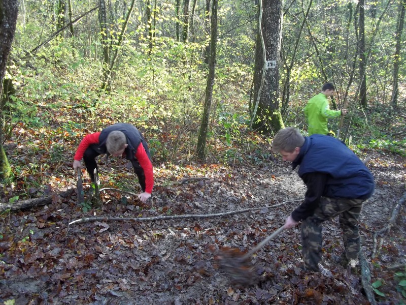 Ce samedi 12 novembre, dès 9 heures du matin, 20 bénévoles de la section VTT (jeunes vététistes et leurs parents) ont répondu présents pour entreprendre les premiers travaux de remise en état du circuit VTT du bois des Brosses sur les hauteurs d'Ambérieu, près du terrain de Moto-Cross.